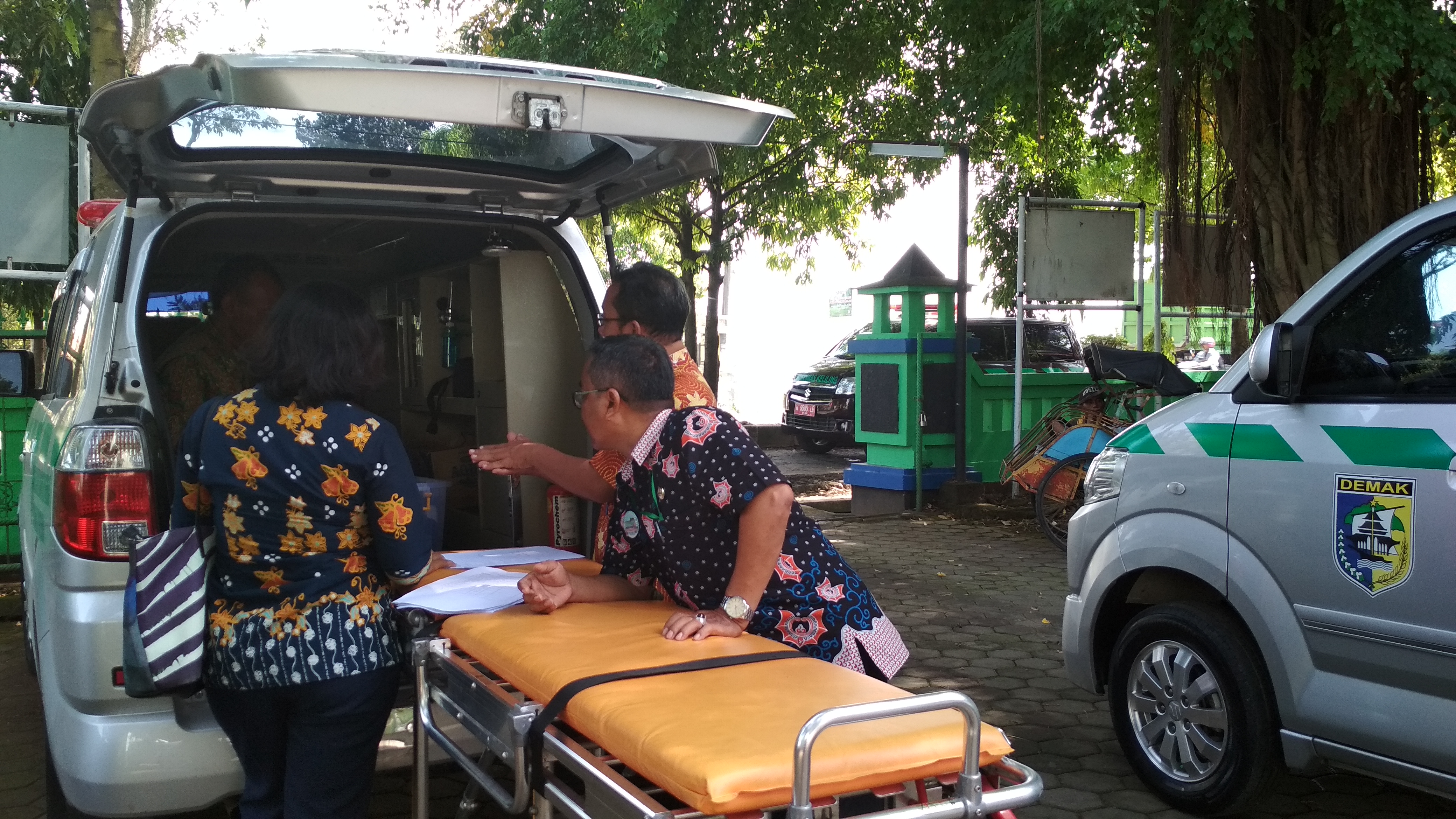 Kegiatan apel mobil ambulan yang digelar di Halaman Dinas Kesehatan Kabupaten Demak ini diikuti serta 37 unit kendaraan beserta tenaga medis yang akan berjaga pada posko kesehatan. Apel untuk mengetahui kesiapan fisik kendaraaan ambulance beserta peralatan medis dimpimpin langsung oleh Tim dari Dinas Kesehatan. “Pengecekan ini untuk memastikan mobil ambulan baik secara fisiki maupun peralatan medisnya siap guna menyambut pemudik,” ucapnya di sela-sela pemeriksaan mobil ambulan, Kamis Pagi (24/5/18).