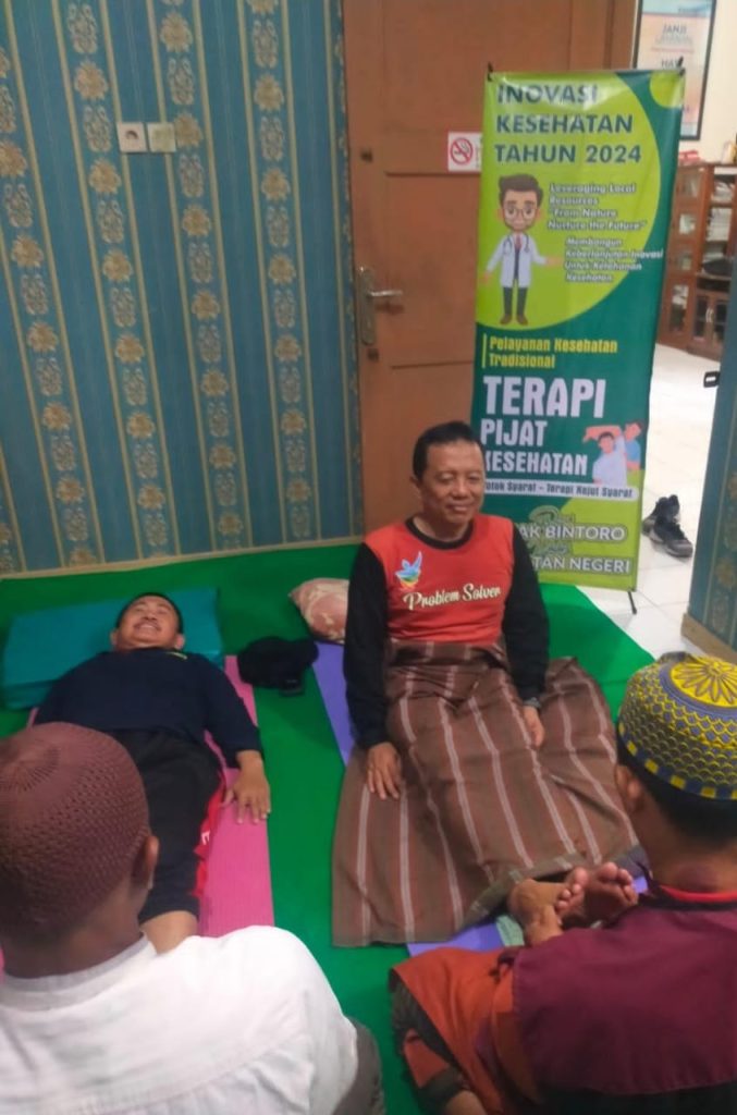 DINKES DEMAK_Dalam rangka memperingati dan menyemarakkan Hari Kesehatan Nasional ke-60 Tahun 2024, Pemerintah Daerah Kabupaten Demak melalui Dinas Kesehatan Kab. Demak menyelenggarakan pelayanan kesehatan tradisional modalitas keterampilan berupa Terapi Pijat Kesehatan berbasis totok syaraf – terapi kejut syaraf. Modalitas terapi ini dikembangkan oleh Paguyuban Penyehat Tradisional Demak, merupakan binaan Dinas Kesehatan Demak, yang diharapkan bisa menjadi keunggulan kearifan lokal daerah dan mampu memberikan kontribusi yang kuat dan positif bagi ketahanan dan kemandirian kesehatan dalam rangka memperbaiki dan meningkatkan derajat kesehatan masyarakat. (8 November 2024)