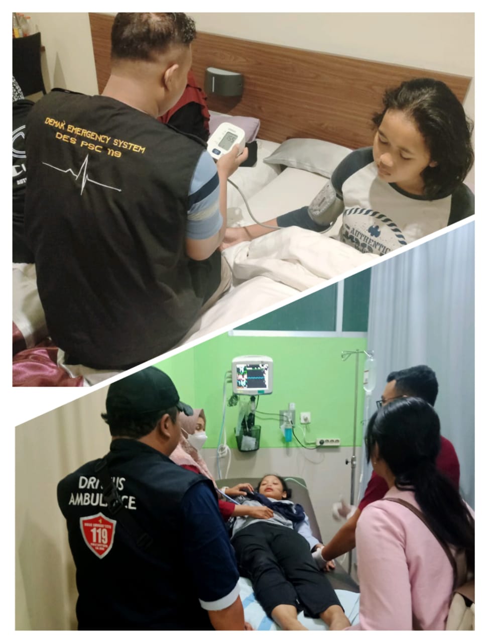 Menanggapi laporan tersebut, tim PSC 119 Demak segera bergerak dengan respon time hanya 2 menit. Armada Mobil APV Ambulance PSC 119 Demak bersama tenaga kesehatan M. Ali Musyafa, S.Kep., Ns. dan Amir meluncur ke lokasi di Hotel Amantis Demak.