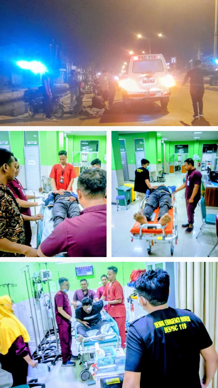 Dalam laporan disebutkan bahwa terdapat satu korban laki-laki tidak sadarkan diri. Dengan respon time hanya 2 menit, tim PSC 119 langsung bergerak cepat menuju lokasi kejadian menggunakan ambulans Mitsubishi Triton DES PSC 119.