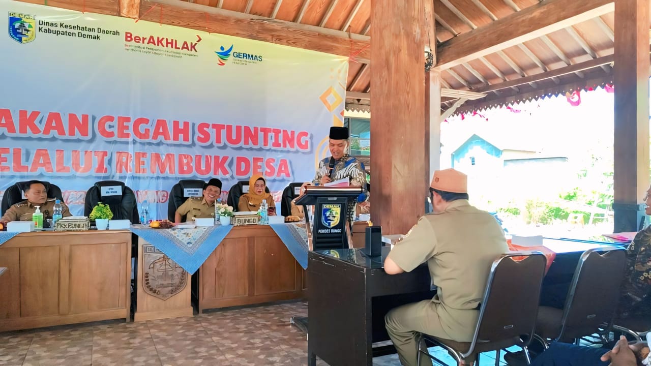 Dalam sambutannya, Kepala Dinas Kesehatan Kabupaten Demak dr. Ali Maimun, M.Kes menyampaikan bahwa upaya pencegahan stunting tidak bisa dilakukan secara parsial, melainkan harus menjadi gerakan bersama. “Stunting bukan hanya persoalan gizi, tetapi juga soal kesadaran bersama. Dengan rembuk desa ini, kita ingin melibatkan semua unsur mulai dari pemerintah desa, kader, hingga keluarga penerima manfaat agar bersama-sama bergerak mencegah stunting,” ungkapnya.
