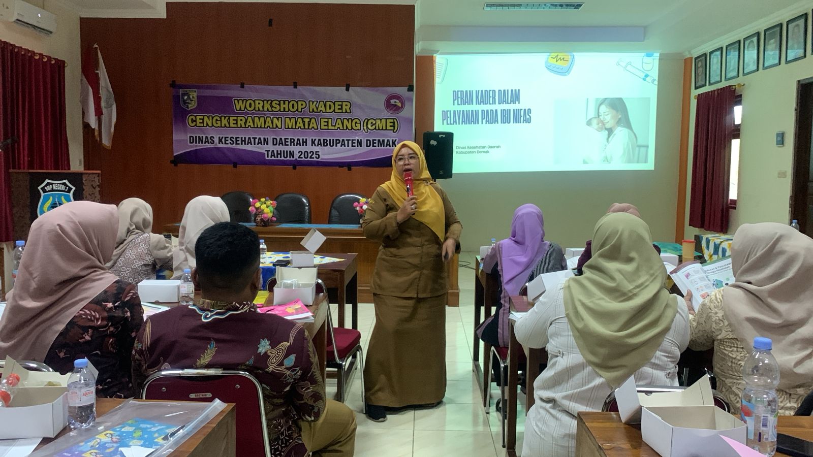 Dinkesda_Demak — Dinas Kesehatan Daerah Kabupaten Demak kembali menggelar Workshop Kader Cengkeraman Mata Elang (CME) Angkatan IX sebagai bagian dari upaya berkelanjutan dalam memperkuat peran masyarakat pada deteksi dini masalah kesehatan ibu dan anak. Kegiatan ini dilaksanakan pada Selasa, 16 Desember 2025, pukul 08.00–14.00 WIB, bertempat di Aula Lantai 2 SMP Negeri 3 Demak.
