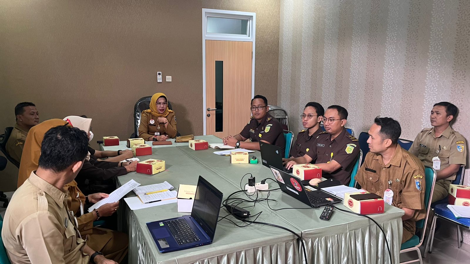 Rapat koordinasi ini dihadiri oleh Kepala Bidang Kesehatan Masyarakat, Kepala Seksi Perdata dan Tata Usaha Negara (Kasidatun) Kejaksaan Negeri Demak beserta tim, serta jajaran tim teknis program kesehatan, meliputi Tim Talkesmas dan Kesehatan Jiwa, Tim P2PTM, dan Tim Promosi Kesehatan dan Pemberdayaan Masyarakat (Promkes PM).