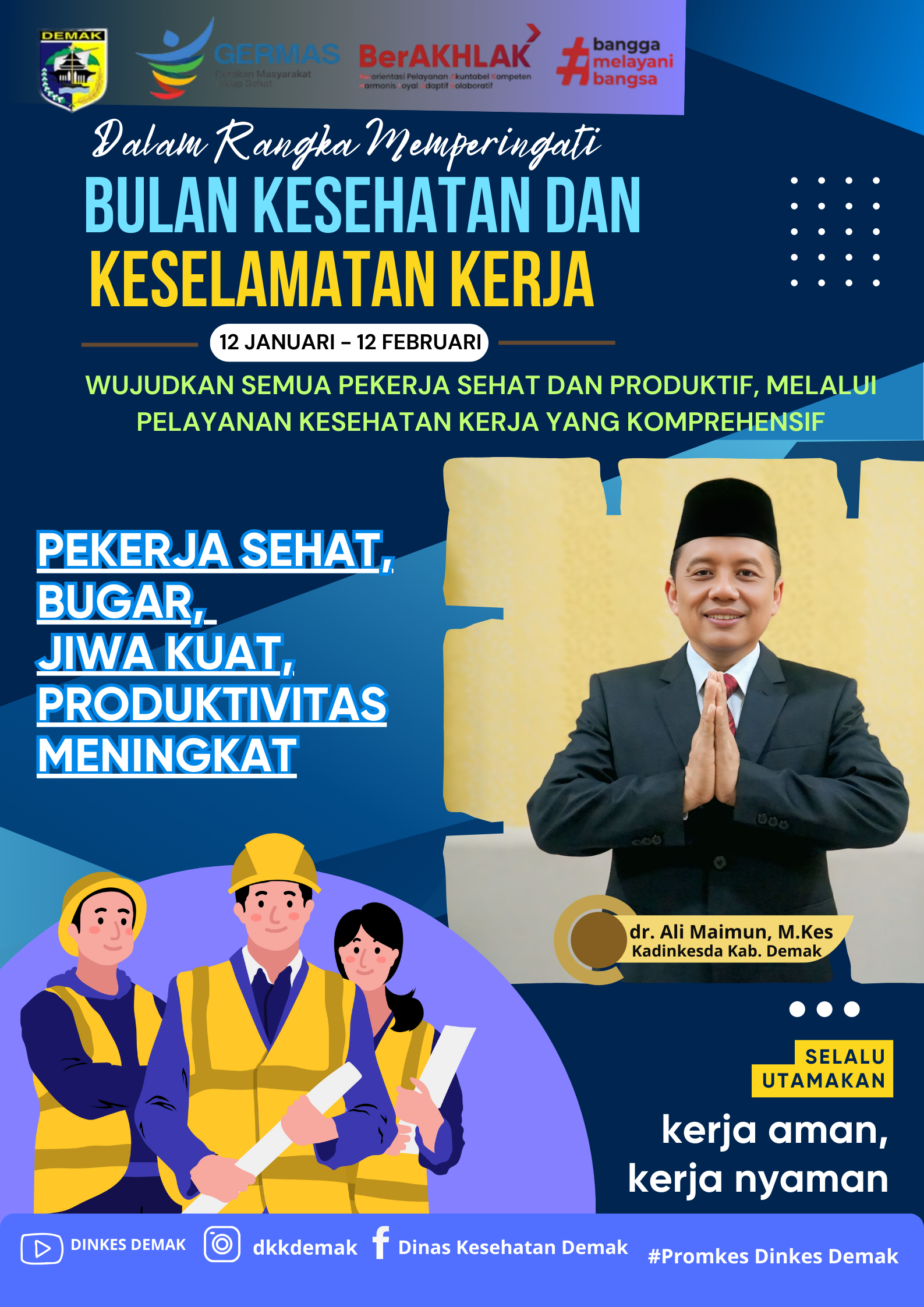 Dinkesda Kab. Demak Mengucapkan selamat memperingati Bulan K3 (Keselamatan dan Kesehatan Kerja)